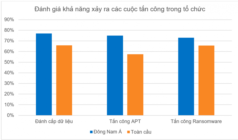 Tỷ lệ các nhà lãnh đạo doanh nghiệp trong khu vực Đông Nam Á cho rằng khả năng tổ chức của họ phải đối mặt với các 3 loại tấn công trên đều cao hơn so với dự đoán toàn cầu.