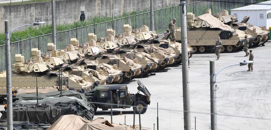 Binh sĩ và thiết bị quân sự tại một căn cứ quân sự của Mỹ ở tỉnh Gyeonggi, Hàn Quốc. Ảnh: The Korea Times |