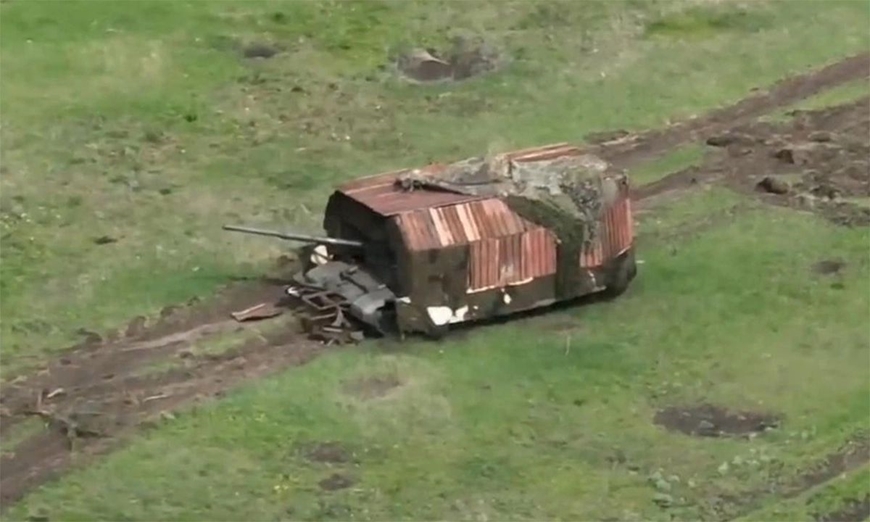 "Xe tăng rùa" được sáng tạo trên chiến trường để đối phó với mối nguy cơ UAV. Ảnh: Lenta
