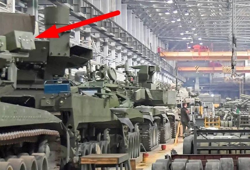 Các xe tăng mới lắp ráp của Nga được trang bị hệ thống APS Arena-M. Ảnh: Topwar