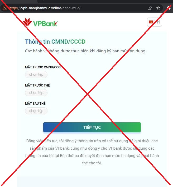 Web giả mạo giao diện ngân hàng với chức năng gia hạn mức thẻ tín dụng trực tuyến |