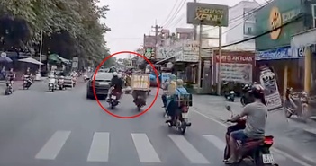 Chiếc xe máy do người đàn ông điều khiển trong khi đang di chuyển qua ngã tư thì bất ngờ bị một xe m ...